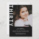 Mark your 30th with sophistication and edge using this black and white modern photo birthday invitation, featuring bold vertical “THIRTY” text and a clean, minimalist layout. The sleek black background creates a timeless, dramatic contrast against your featured photo and custom event details.