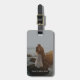 This luggage tag design features a custom photo with a last name in a simple serif font giving the design a refined and artistic touch.