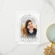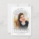 This modern chic graduation thank you card features a photo arch and elegant trending typography.