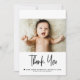 Share gratitude in a heartfelt and stylish way with this modern baby photo thank-you card. Featuring your newborn’s full photo on the front, handwritten “Thank You” lettering, and personalized birth stats, this card is perfect for thanking friends and family for their thoughtful gifts, love, and support.
