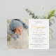 An simple modern Baptism invitation featuring a favourite baby photo. Personalise with your baby's name in gold foil typography. All other details are in a simple typography.