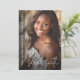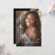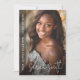 Graduation invitation featuring your photo with the name of the graduate in a modern, white script font and the name and year aligned to the left over a dark overlay. Additional photo and custom invitation message on the back.
