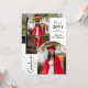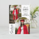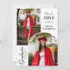 Modern Photo Black White Graduation Announcement features three of your favourite photos of your graduate, with the grad's class year, graduates name and school, university or college, degree, qualification or future plans with the swirly modern black calligraphy script overlay "Graduate". On the reverse add your custom message. Simple, stylish and classy. Created by ©2025 Evco Studio www.zazzle.com/store/evcostudio