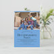 A housewarming invitation with customisable text. The photo is a template and meant to be swapped out for your own. The invitation has a blue background and dark blue text.