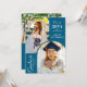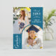 Modern Photo Ocean Blue White Graduation Announcement features three of your favourite photos of your graduate, with the grad's class year, graduates name and school, university or college, degree, qualification or future plans with the swirly modern white calligraphy script overlay "Graduate". On the reverse add your custom message. Simple, stylish and classy. Created by ©2025 Evco Studio www.zazzle.com/store/evcostudio