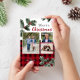 Buffalo plaid, snow and winter greenery Christmas holiday photo card. Easily personalised with your photos and names! Additional text can be added on back side.