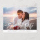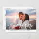 A modern photo wedding save the date card design with editable text and white brush lettering. Feel free to personalise the image and text.