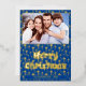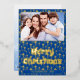 Modern photo Christmas Jesus cross regal navy blue Foil Holiday Card