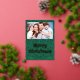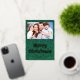 Modern photo Christmas script Jesus cross green Foil Holiday Card