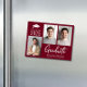 Modern Class of 2025 burgundy red magnetic graduation announcement card featuring 3 photos and "Graduate" in a contemporary bold white script. Add the grad's name, class year and high school or college in simple white typography.