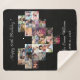 The blanket features a black background, 26 photo collage in the shape of a heart, their name and birthday date.