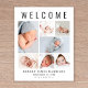 An elegant and budget-friendly birth announcement to introduce your newborn baby to family and friends. This design features "Welcome" across the top in large typography, a 7 photo collage and their name, birth date and birth stats in simple modern typography. On the back, add another photo and a personalised message.
