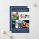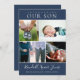 Share the news of the birth of your son with these navy blue four photo collage birth announcements.