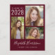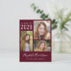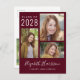 Modern burgundy red graduation announcement postcard with the class year and a 3 photo collage on the front. Add the graduate's name in a stylish trendy white script and school or university below in simple white typography. On the reverse, add an additional picture and a customised message.