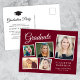Modern Photo Collage Burgundy Graduation Party Invitation Postcard
