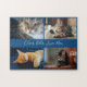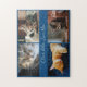 Modern Photo Collage Custom Script Name on Blue Jigsaw Puzzle