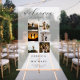 Create your own personalised wedding welcome sign with your personalised photo collage, elegant calligraphy script typography and modern minimal design.