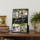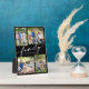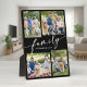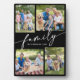 This personalized modern keepsake easel plaque features 4 custom photos with the word “family” in elegant handwritten calligraphy script. The black background can be changed to your own custom color.