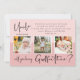 Modern photo collage Godfather proposal card. Design features 3 photos of the baby, typography script, will you be my Godfather on a pink and pastel blush pink background.