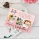 Modern photo collage Godmother proposal card. Design features 3 photos of the baby, typography script, will you be my Godmother on a pink and pastel blush pink background.