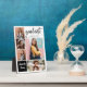 Modern, trendy Graduation photo collage keepsake plaque. Plaque features 5 photos of the graduate, typography script  ''graduate'', class of, school name and graduate's name and last name in trendy lettering on the front. Perfect as a gift or a keepsake.