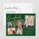 Modern Photo Collage Green Gold Graduation Party Invitation Postcard