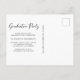 Modern green graduation party invitation postcard with a 5 photo collage of scattered pictures in gold frames, "Graduate" in a chic gold script, the grad's name in elegant gold typography and their school and class year in simple gold typography. Personalise your party details on the back.