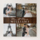 Modern Photo Collage Newlyweds Monogram Dark Wood Jigsaw Puzzle