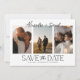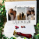 Modern, minimal photo collage Wedding save the date card. Design features 3 photos, your names in trendy handwritten lettering, wedding date & location on the front and trendy monogram on the back.