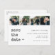 Trendy minimalist elegant black and white typewriter typography wedding save the date postcard with 4 photo collage grid. +++++++++++ Suitable for any season and theme. ++++++++++ Easy to personalise with your pictures and details!