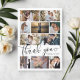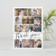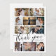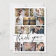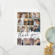 Modern, elegant photo collage Wedding Thank You Card. Design features 10 photos, typography script ''thank you'', names , wedding date on the front and your message on the back.