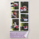 Modern photo collage with six photos and name personalised lavener beach towel. On the right end there is a black stripe and a band of solid lavender purple colour with your text and a red heart. Photography © Storytree Studios, Stanford, CA