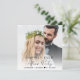 Modern light cream elopement or small wedding announcement and reception invitation. The front features your wedding day photo overlayed with "Happily Ever After Party" in a mix of simple typography and a chic script. Under your photo, add your first names and wedding date. On the back, personalise your message, add party or reception details and add your names in a signature-like script.