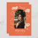 Celebrate your achievement with this stylish graduation announcement featuring a photo and playful hand-drawn doodles. Orange.