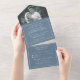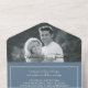 Modern Photo Dusty Blue Wedding RSVP All In One Invitation