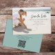 This design features save the date wedding photo with a trendy QR code a simply elegant, stylish calligraphy cute unique design, vintage handwritten beautiful simple, modern traditional minimalist minimal, photo couple picture 1 one, white text engagement chic trendy, teal whimsical script typography font, photo save the dates, engaged full photo bleed overlay, modern calligraphy handwritten script