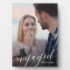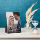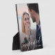 Elegant photo engagement keepsake. Perfect to display your favourite engagement photo. Design features single photo, typography script ''engaged'' in handwritten lettering and a date of your engagement.