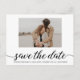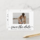 Our Modern Photo Engagement Save The Date script Postcard is not only a practical way to inform your loved ones about your engagement, but it also serves as a keepsake that they can cherish for years to come. Whether you're planning an intimate gathering or a grand celebration, this postcard sets the stage for an unforgettable wedding experience.