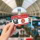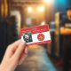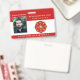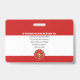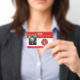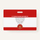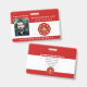 Modern red, gold and white Firefighter ID badge features single photo on the front, ID number, name of the Fire Department, name and title. Personalise with your own logo and bar code. Add contact details on the back and your logo. To edit this template click ''customise further''.