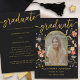 Featuring luxe gold calligraphy script, a dreamy watercolor wildflower arch, and a stylish black background, this invite brings fresh, fashionable vibes to any celebration. The front showcases her name and college or high school name and graduation date and the back has the achievements and key party details in glamourous gold script over a sleek black backdrop, sophisticated, and totally Instagram-worthy.