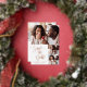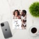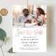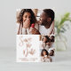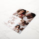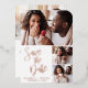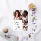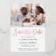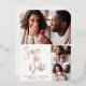 Modern wedding save the date announcement card. The front features a collage of 3 of your favourite photos, "Save the Date" written in a real rose gold foil script and your names and wedding date in simple typography. On the reverse side, "Save the Date" is repeated in a faux rose gold foil script, and you can add an additional photo and personalise your details.