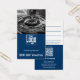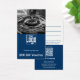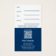 · Lower half: Blue background with white text, featuring a "Scan for Date!" CTA, customisable QR code, and the company's name, physical address, and virtual contact details.
