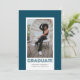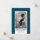Modern Minimal Teal Dark Blue Photo Graduation Announcement Card with custom photo