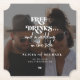 Trendy dark transparent overlay white script free drinks and a wedding on the side open bar wedding save the date personalized drink coaster.