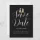 modern elegant photo wedding save the date with Whimsical Dinosaur theme wedding “Save the Date” black and white Card Funny T-Rex Bride & Groom Wedding Announcement