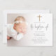 Modern Photo Gold Glitter Cross Baptism Invitation