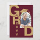 Modern Maroon Gold Photo Graduation Invitation. Celebrate your grad with these modern burgundy and gold graduation invitations featuring the graduate's photo on the front inside an arch shape instead of the letter A in Grad, and big bold letter spelling GRAD with graduation year on the front. On the back is the information for the graduation party including an image of a diploma and graduation party details for all your invited guests.
