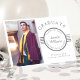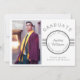 This modern design features the text "Graduate" and the editable text for your name, class, school and proud parents (or your preferred text) in popular silver typography on a white background. Add your own photo on the left of the card. On the reverse of the card are five vertical lines. Personalise by editing the text in the text box.