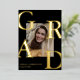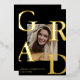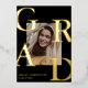 Photo graduation party invitation, featuring a photo of the graduate, with text that reads, GRAD, class of 2023, and their name in gold foil. On the reverse is a stylish party invitation. Font styles can be changed by clicking on the customise further link after personalising.