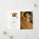 Announce your achievement in style with this modern graduation announcement, featuring a sleek design with a gold graduation cap, your photo, and elegant gold script calligraphy initials monogram. The clean design adds a touch of sophistication. Gold and black type. Available in print, as a digital download, or both.